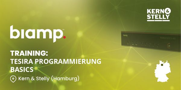 Philipp Herber, Medientechniker und Biamp Trainer bei Kern & Stelly, bietet in regelmäßigen Abständen einen eintägigen Kurs zum Kennenlernen der Biamp Tesira Plattform im UC-Kontext in unserer Kern & Stelly Akademie in Stein bei Nürnberg an.